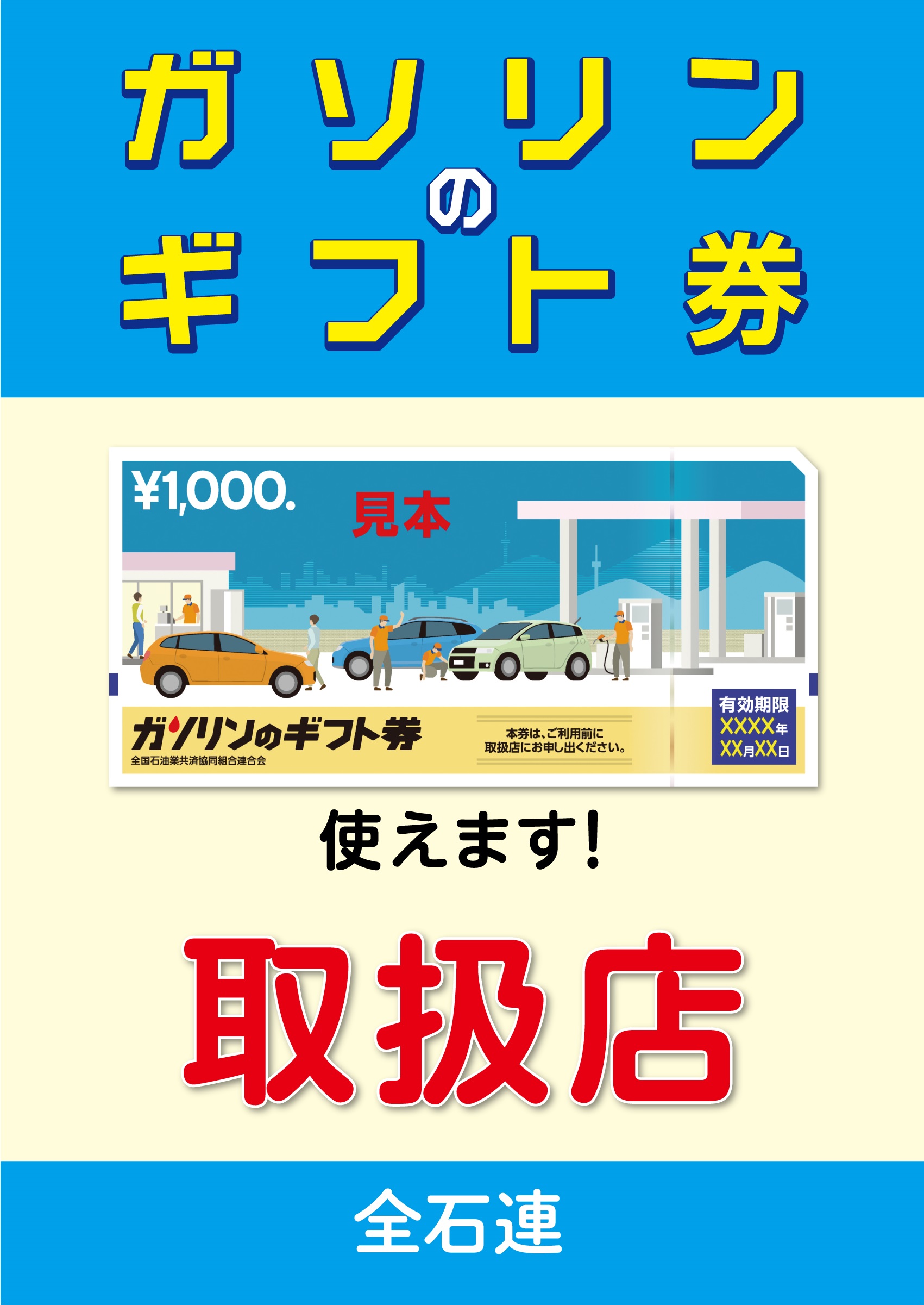 SSで取り扱っているガソリン、軽油、灯油のほか、洗車、オイル交換などのサービスにも使えるSS専用のギフト券です。組合員であればギフト券の取扱店になれます。取扱店に、参加費、手数料、設備費の負担はありません。