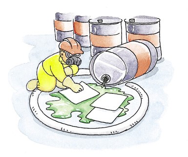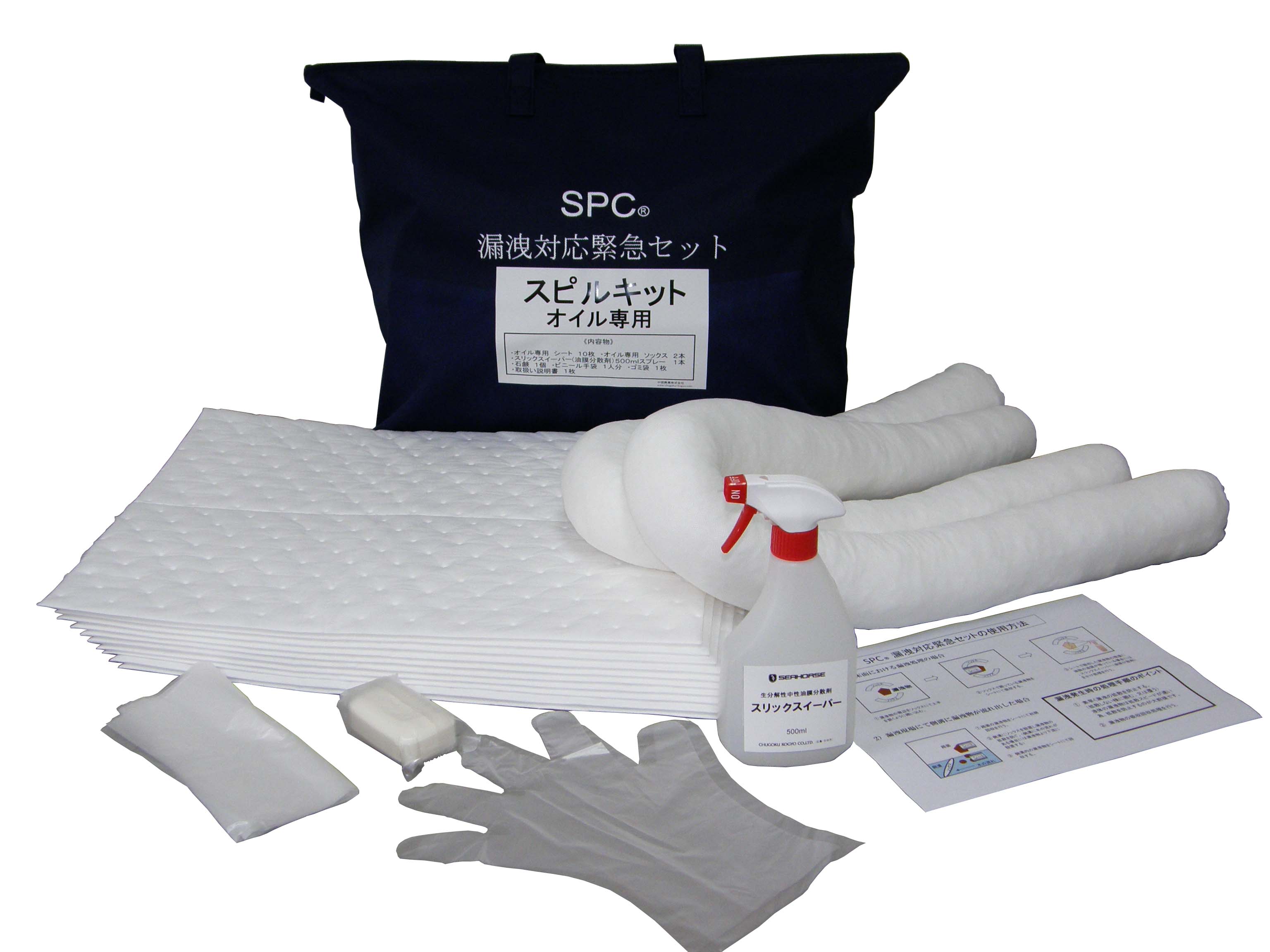 残った油膜は、スリックスイーパー(油膜分散剤)を噴霧し、きれいに拭き取ってください。
